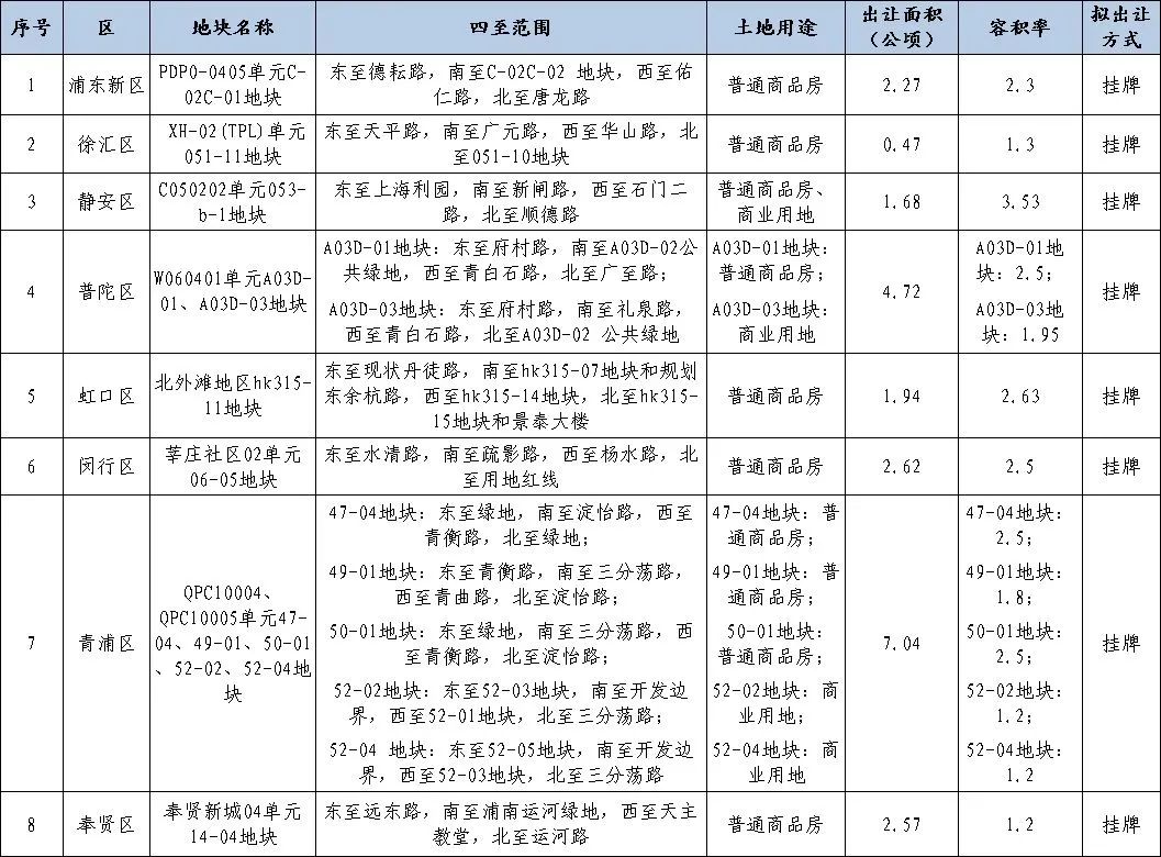 上海今年第六批次8幅拟出让商品住宅用地清单公布国内正规配资平台,涉徐汇、静安等区上海今年第六批次8幅拟出让商品住宅用地清单公布,涉徐汇、静安等区